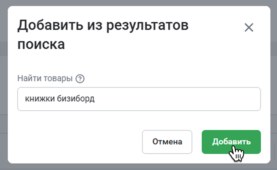 Введите интересующий вас поисковый запрос и нажмите Добавить. Мы подберем товары с первых страниц выдачи и добавим их в группу.