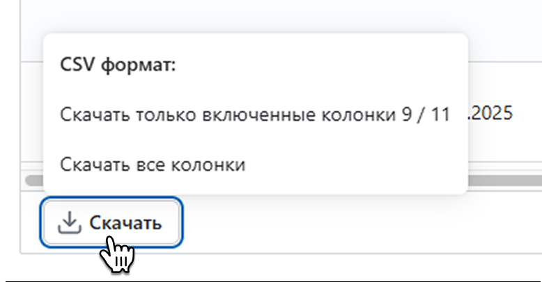 Нажмите кнопку Скачать и выберите, что именно из отчета вы хотите загрузить.