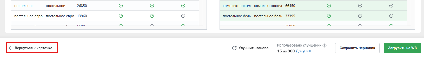 Если вы хотите сохранить новую версию, но пока не загружать ее на Wildberries, нажмите Сохранить черновик. Найти его можно будет в истории версий карточки, которую вы улучшаете.