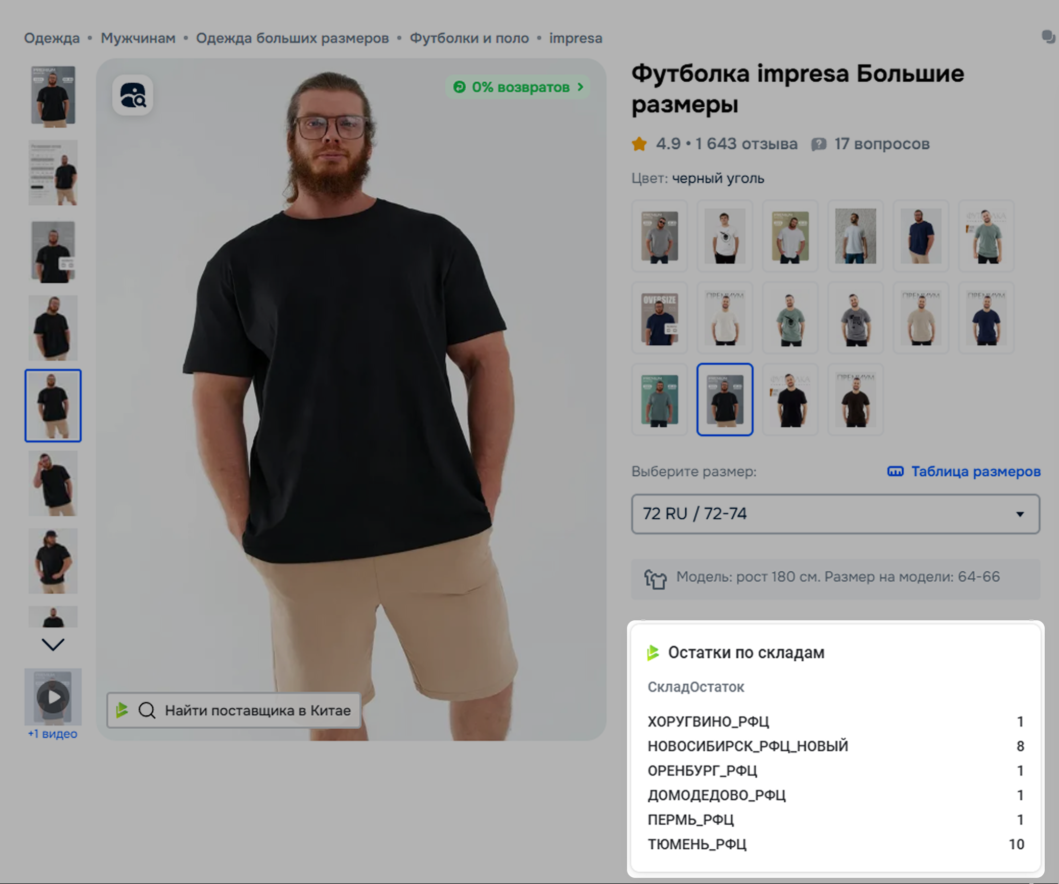 Плагин показывает количество остатков товара на складах. Это поможет понять, какие склады используют конкуренты, и взять их на вооружение.