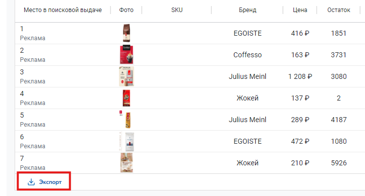 В этой вкладке плагин покажет сводную таблицу по всем товарам введенного вами запроса.