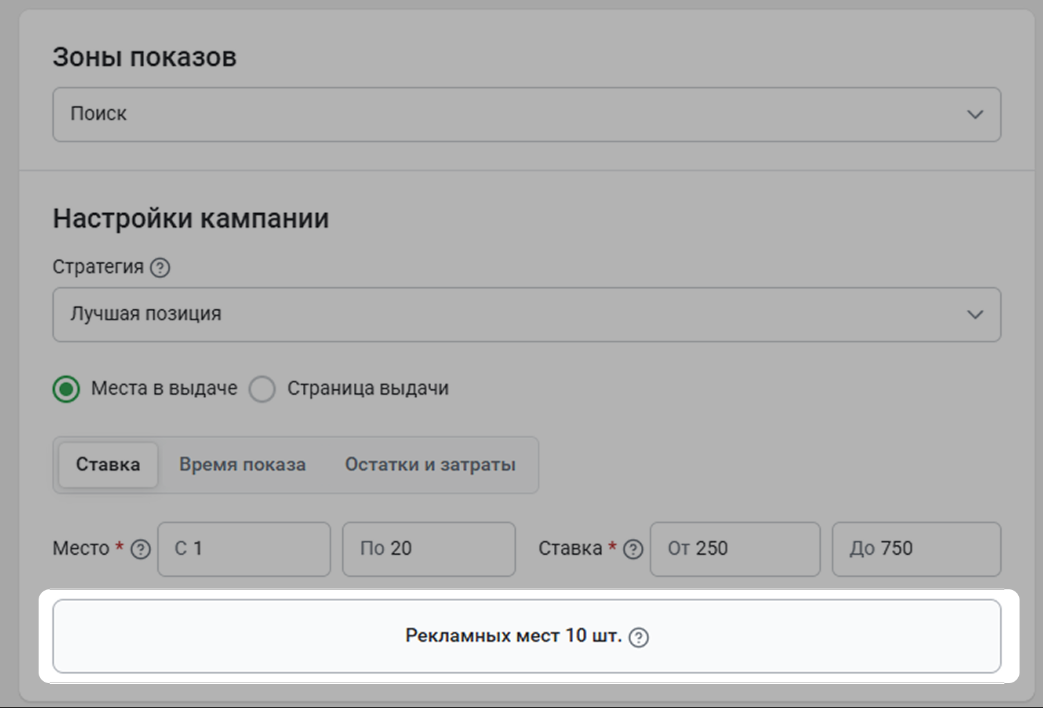 Важно! Места в рекламе могут быть рекламными или органическими. Когда вы запускаете продвижение, товар может занять только рекламное место. Чтобы точно попасть на нужное место – укажите подходящую для него ставку