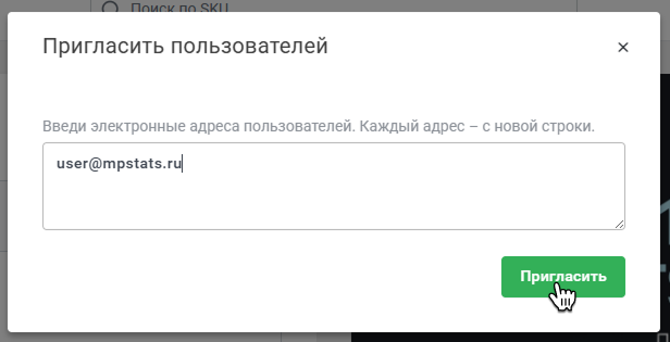1. Перед тем, как пригласить пользователя в аккаунт, убедитесь, что он зарегистрирован в сервисе MPSTATS.
