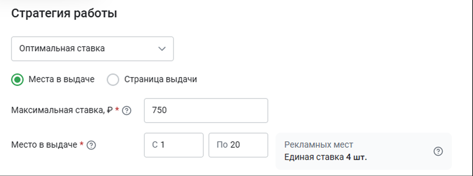 Оптимальная ставка подойдет тем, кто хочет контролировать свои затраты на рекламу, сохраняя при этом видимость карточки в определенном диапазоне позиций.