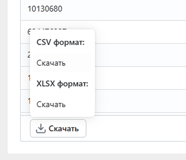 Если хотите скачать все запросы кластера для дальнейшей работы, нажмите кнопку Скачать в левом нижнем углу таблицы и выберите формат: .xlsx или .csv.