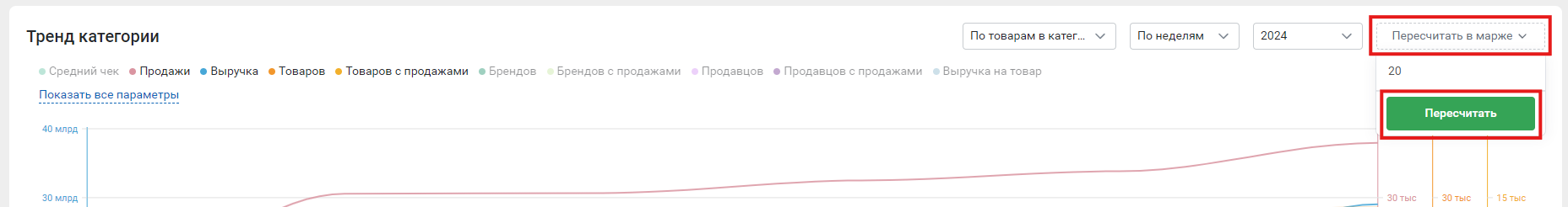 Такой отчет можно посмотреть по категории, бренду или продавцу.