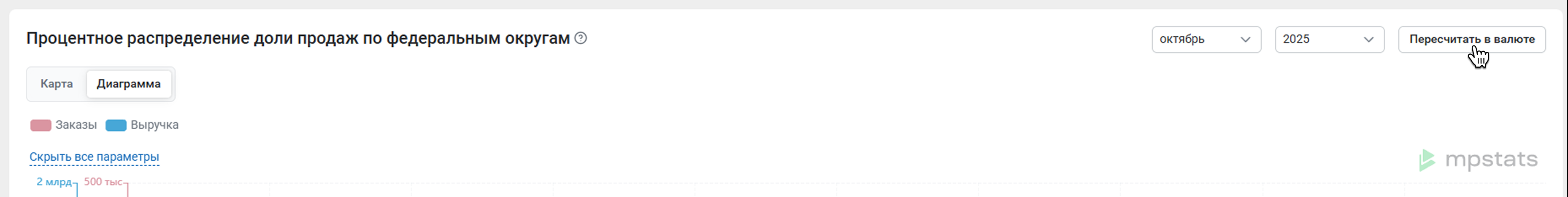 На странице отчета нажмите кнопку Пересчитать в валюте.