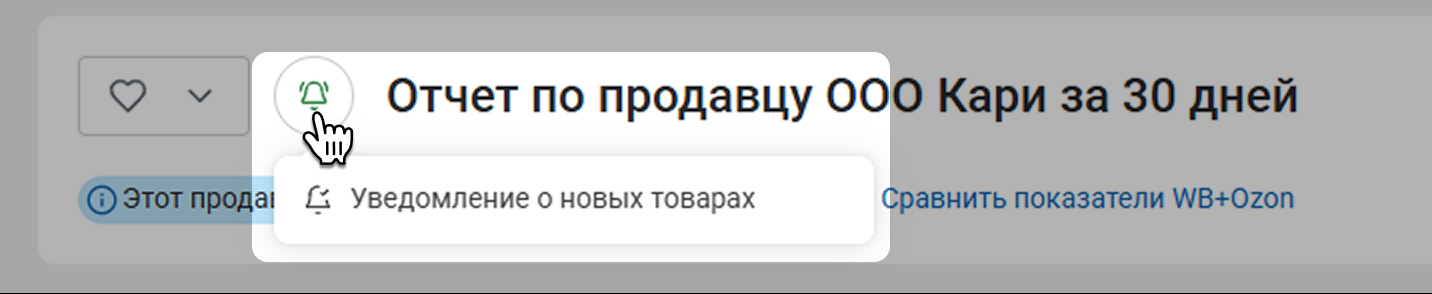 Уведомим, если у продавца появятся новые товары. Для этого перейдите в Отчет по продавцам Wildberries или Отчет по продавцам Ozon, найдите интересующего продавца и нажмите на колокольчик.