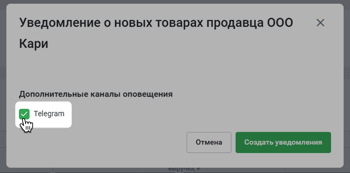В открывшемся окне укажите, хотите ли вы получать уведомления в Telegram, и нажмите Создать уведомления.
