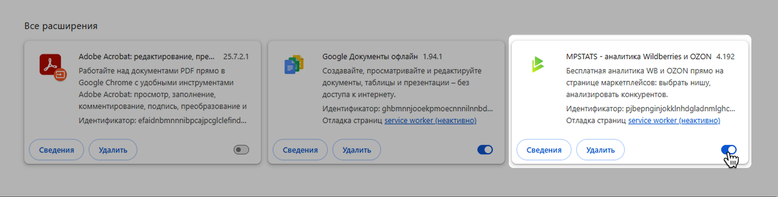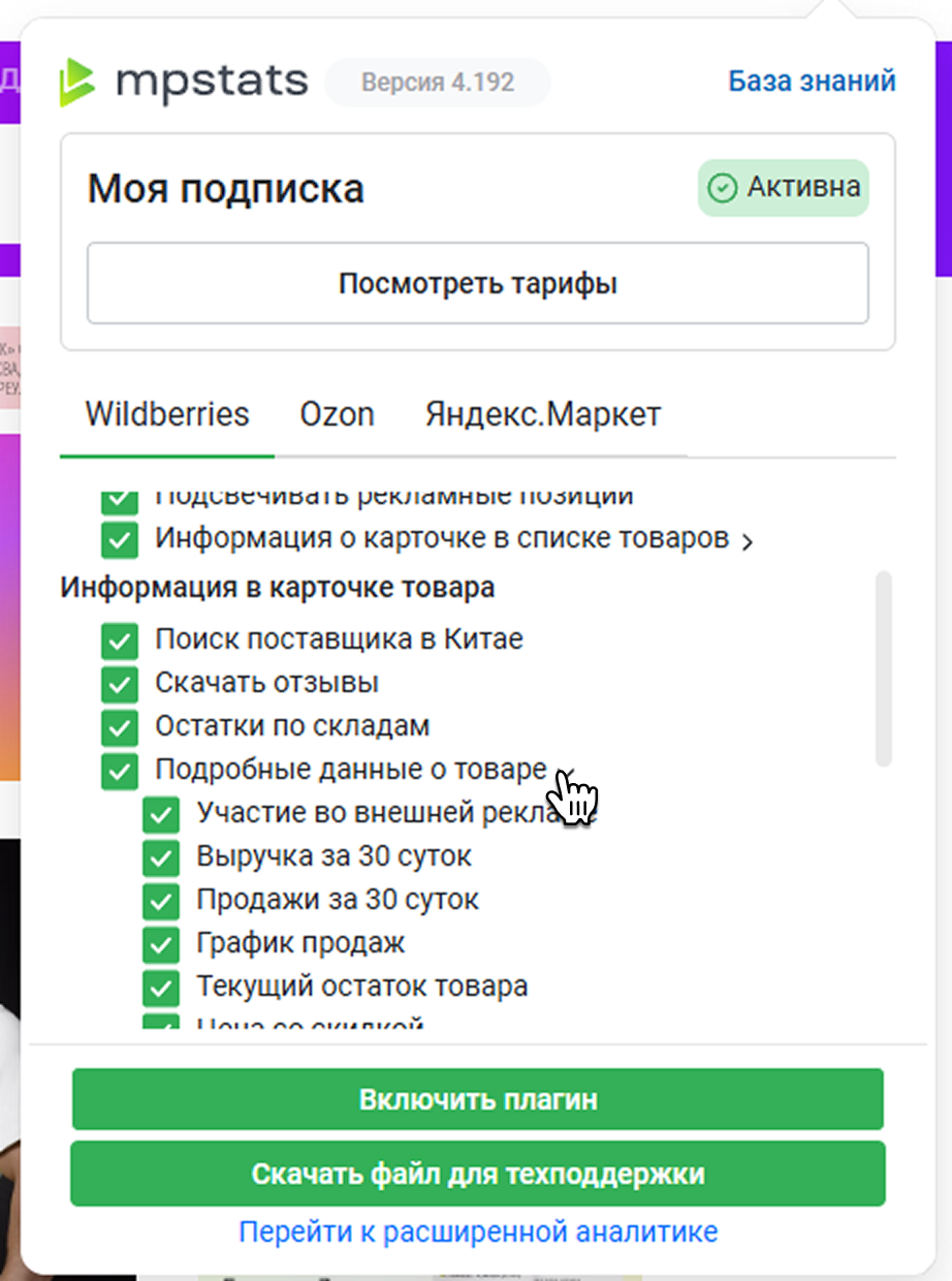 Перейдите в Расширения браузера и включите плагин mpstats.io.